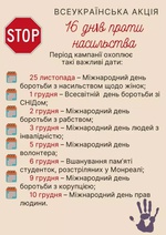 - Всеукраїнська акція «16 днів проти насильства»
